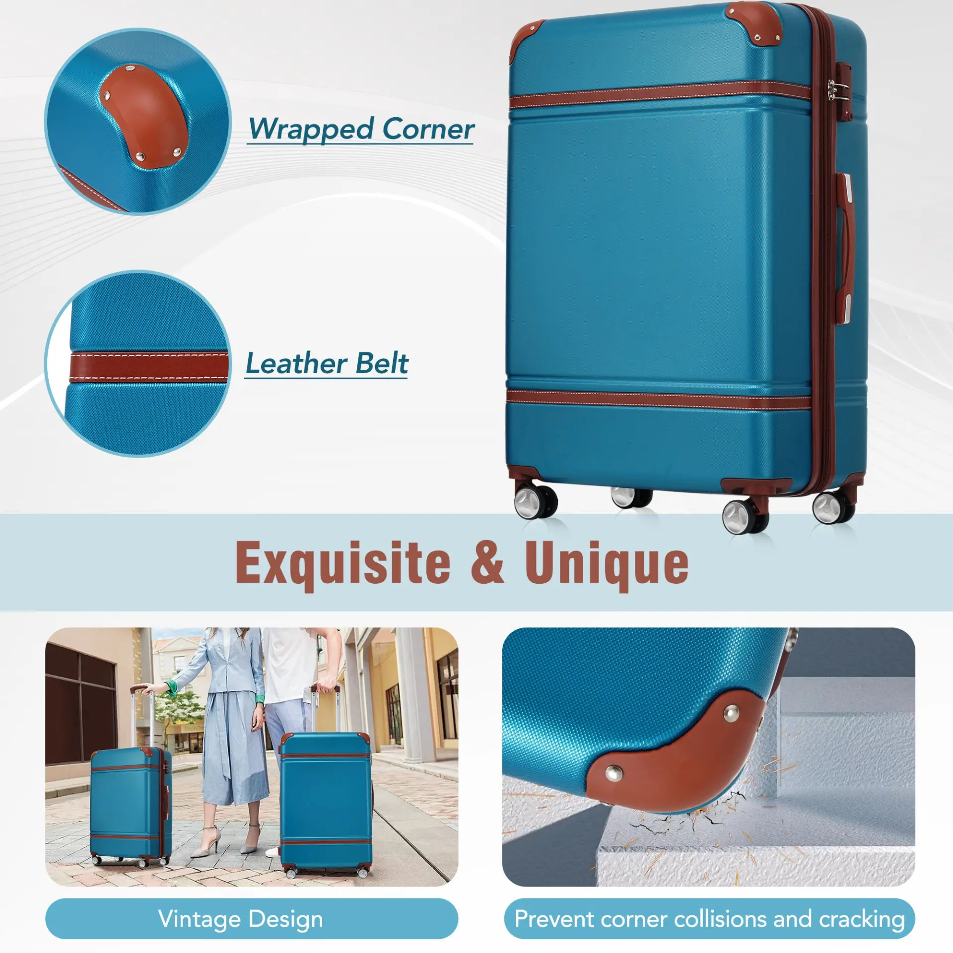 - [High Quality Luggage Sets]: Made of lightweight and durable ABS material upgraded with strong resistance to stress, high and low temperatures and impact. Note:The 20-inch suitcase cannot be expanded.And there are no straps on the back of the suitcase.