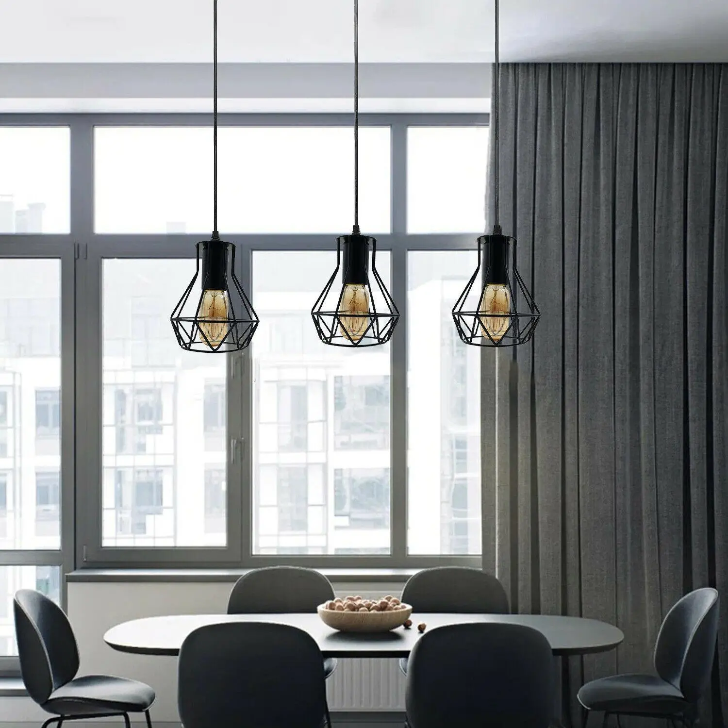 3 Head Rectangle Base Industrial Metal Cage Ceiling Pendant Light UK~1414
