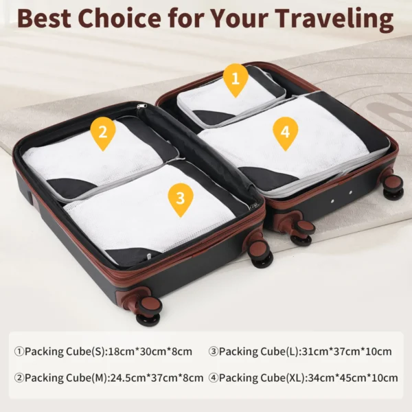 - [Suitable Luggage Set] Luggage set includes 4 suitcases-16’+20’+24’+28’and 4 compression packing cubes for suitcase, enjoy a matching small and large luggage to travel with together or separately depending on how much you decide to bring with you on your trip.