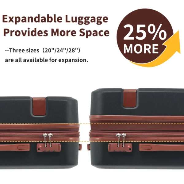 - [Spacious & Organized Packing] The 24’& 28′ suitcases feature a built-in expandable feature, allowing you to increase packing space by 25%. The luggage interior also features elastic cross over straps and mesh pockets for easy organization.