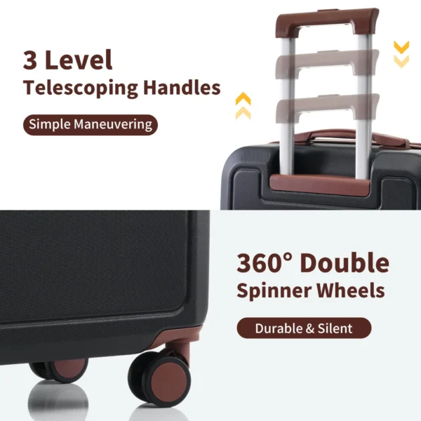 - [360 Spinner Wheels] Each luggage is fitted with quad smooth-glide base 360 degree swivel spinner wheels for easy transportation through terminals, on concrete, cobblestone and more.