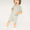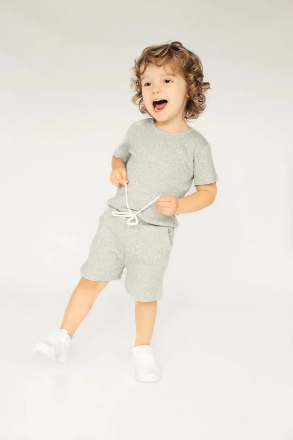 * EASY TO WEAR: Pull on closure andtwopockets. Adorable baby girl and baby boy shorts set. With fastening, pull on this unisex summer set clothing it is super easy to wear for your children and keeps kids comfortable during playtime. Solid color short sleeve top matching shorts in colour Dove Grey, a beautiful shade of Grey
