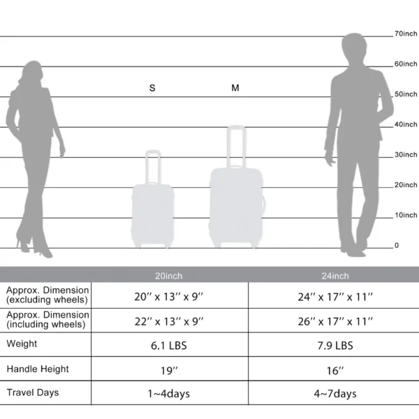 - [Suitable Luggage Set] Coming in a complete uniform set, enjoy a matching small and large luggage to travel with together or separately depending on how much you decide to bring with you on your trip.