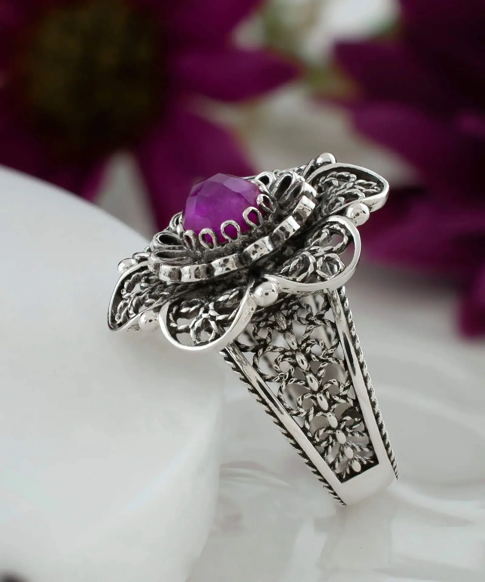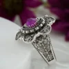 Crafted with exceptional attention to detail, this women’s cocktail ring showcases a unique ornamental 925 sterling silver filigree art design, perfectly complemented by the rich red hue of the Ruby corundum gemstone. It comes with a luxurious gift box, making it an ideal gift for someone special.