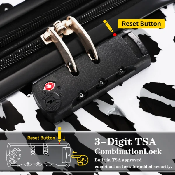 - Material: These luggage sets with wheels are made from high tenacity PC material, harder and more resistant to pressure, effectively reducing damage caused by collisions during travel.