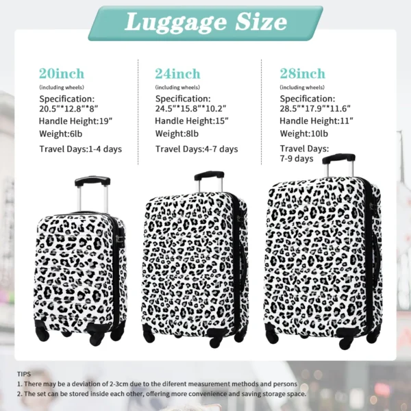 - Protection: Each suitcase is covered with a protective film, which can be removed before use to avoid bumps and scratches during transportation.