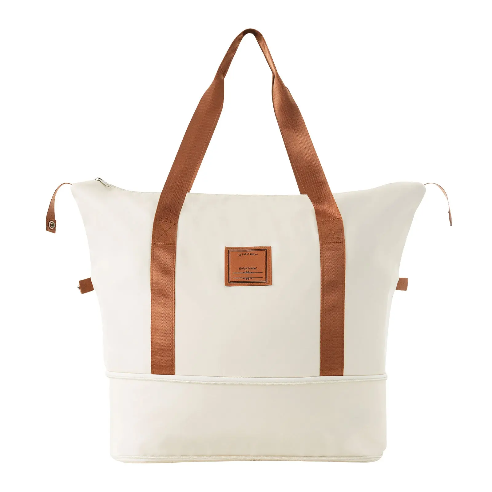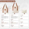 - Expandable Weekender Bag: (front shape is trapezoidal): longest length: 21.7′, shortest length: 15.7′, width: 8.3′, height: 13′, expanded height: 17.7′. The duffel bag has a trolley sleeve with zippered pocket, so you can conveniently hang the bag on the adjustable luggage handle.