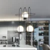 LED: Integrated LED fixture DESIGN: Modern Chandelier with Aluminum Wire Frame and White Frosted Glass Ball Shaped Shades LIGHT DIRECTION: Ambient ADJUSTABLE: Height adjustable cables through cable locking pins, from 80.25 inches total height to 25.75 inches, with each cable being adjusted individually DIMMABLE: Dimmable LED (15% – 100%) with ELV – Electric Low Voltage dimmers (Dimmer is not included with the fixture) ONLY compatible with ELV dimmers. Wi-Fi, Smart, and Universal dimmers are NOT compatible SOFT WHITE: 3000 Kelvin color temperature BRIGHTNESS: 829 Lumens EFFICIENCY: 16 Watts low power consumption CRI 90: is the highest measurement of light in relation to accuracy of color appearance DRY LOCATION APPROVED: ETL listed for dry locations VOLTAGE: Operates on standard 120 line voltage ETL Certified, cETL Certified, Title 20 Compliant, Title 24 Compliant, Prop 65 Compliant, Energy Star Compliant Installer Tip: DO NOT CUT WIRES attached to the fixture under any circumstance. Excess cable should be neatly looped and tucked into the canopy Slanted/ Sloped Ceiling Compatible