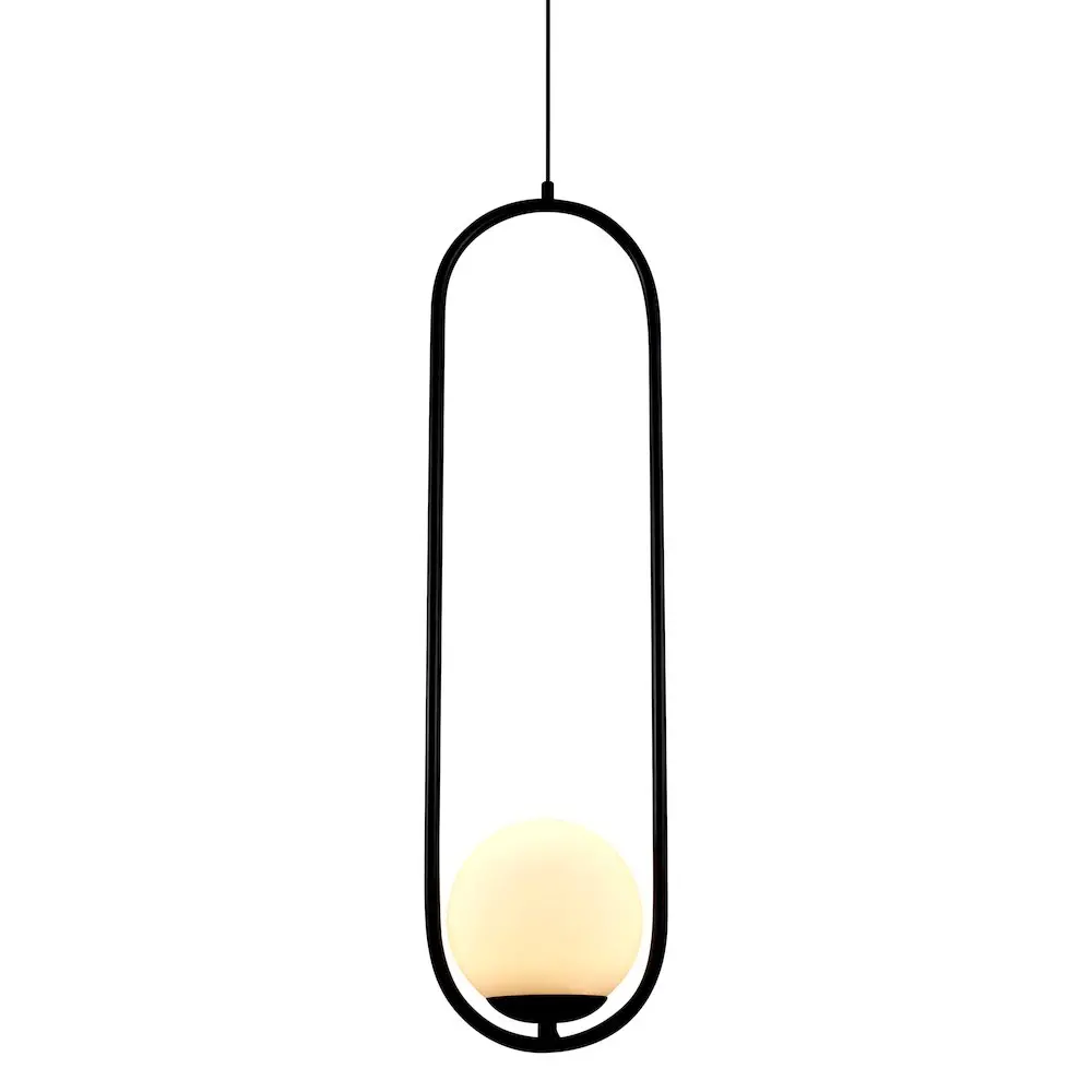 LED: Integrated LED fixture DESIGN: Modern Black Pendant Light with 1 White Glass Shade LIGHT DIRECTION: Ambient ADJUSTABLE: Height adjustable cable through cable locking pin, from 84.25 inches total height to 24.75 inches minimum height DIMMABLE: Dimmable LED (15% – 100%) with ELV – Electric Low Voltage dimmers (Dimmer is not included with the fixture) ONLY compatible with ELV dimmers. Wi-Fi, Smart, and Universal dimmers are NOT compatible SOFT WHITE: 3000 Kelvin color temperature BRIGHTNESS: 699.2 Lumens EFFICIENCY: 9.3 Watts total consumption CRI 90: is the highest measurement of light in relation to accuracy of color appearance, ETL Certified DRY LOCATION APPROVED: ETL listed for dry locations VOLTAGE: Operates on standard 120 line voltage Installer Tip: DO NOT CUT WIRES attached to the fixture under any circumstance. Excess cable should be neatly looped and tucked into the canopy 5 YEAR LIMITED WARRANTY: Fixture covered under warranty period ETL, cETL, Title 20 Compliant, Title 24 Compliant, Prop 65 Compliant, Energy Star Compliant