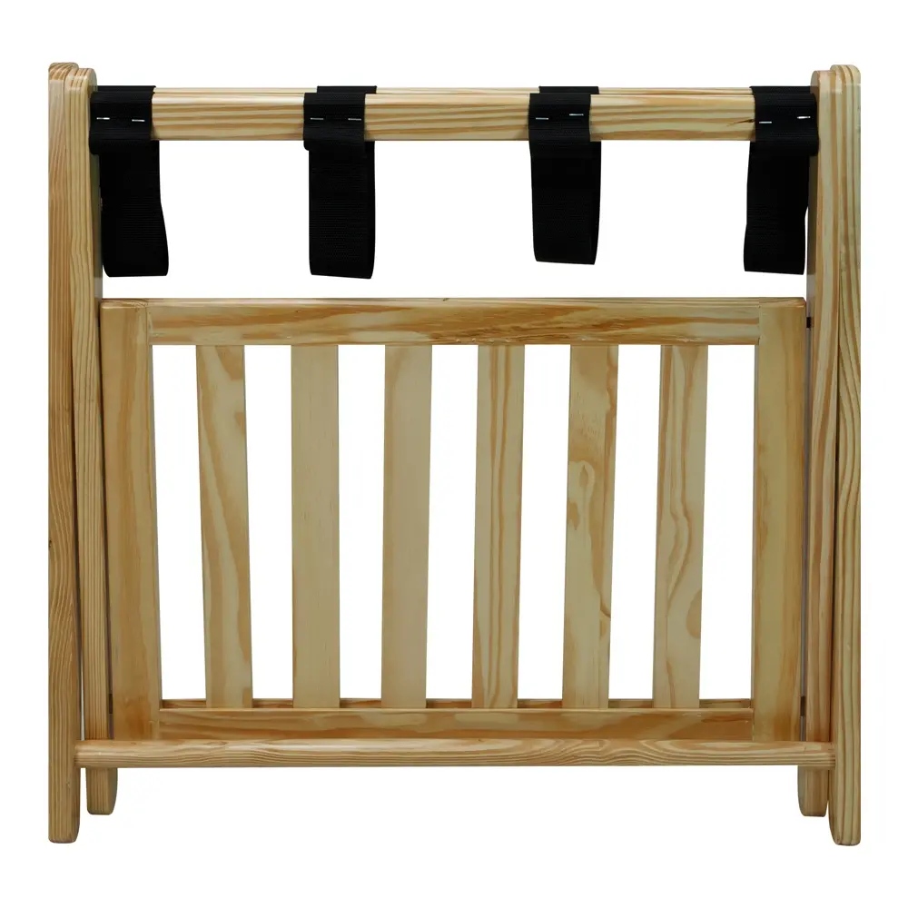 Hotel-style folding luggage rack welcomes guests with a convenient spot to pack and unpack.