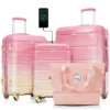 Luggage Sets 4 Piece, 20-inch with USB Port, Expandable ABS Durable Suitcase with Travel Bag, Cup Holder, ABS+PC Hard Shell Luggage with Spinner Wheels, Gradient Pink