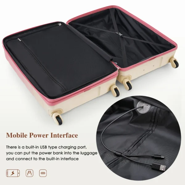3 Piece Luggage setThe 20″ carry on suitcase features USB charging ports (Power bank not included), 24″, 28 “are expandable, adding 25% space capacity for hardshell luggage.