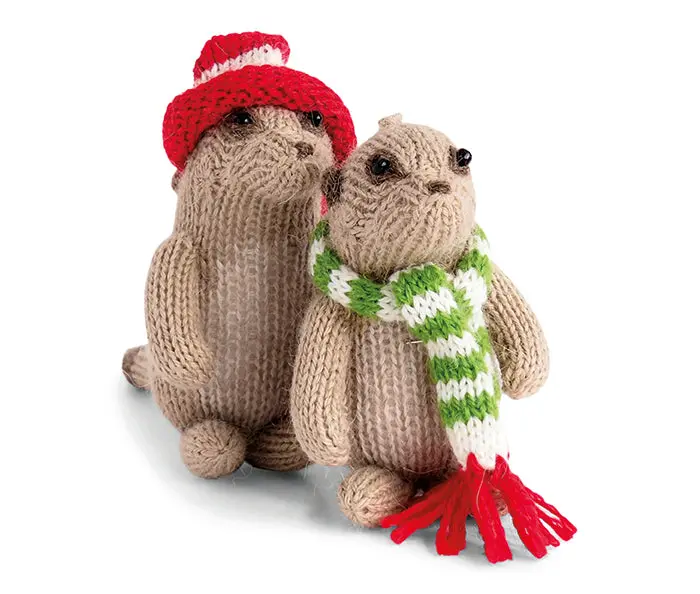 Adorable meerkats ready for winter in cozy Christmas hats & scarves.– set of 2