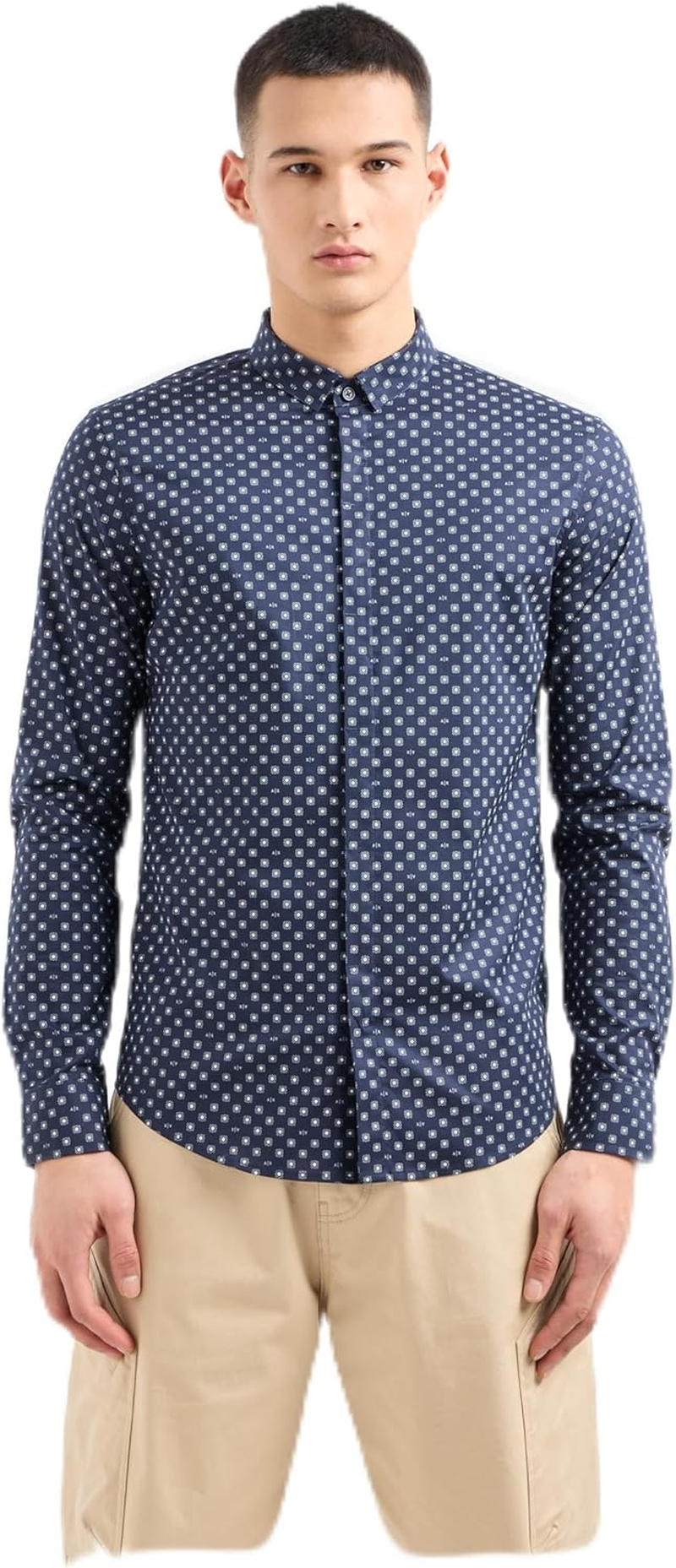 This A|X Armani Exchange Men’s long sleeve button down shirt is the perfect piece to elevate any outfit, coming in a slim fit and breathable cotton with an all-over rhombus shape print.