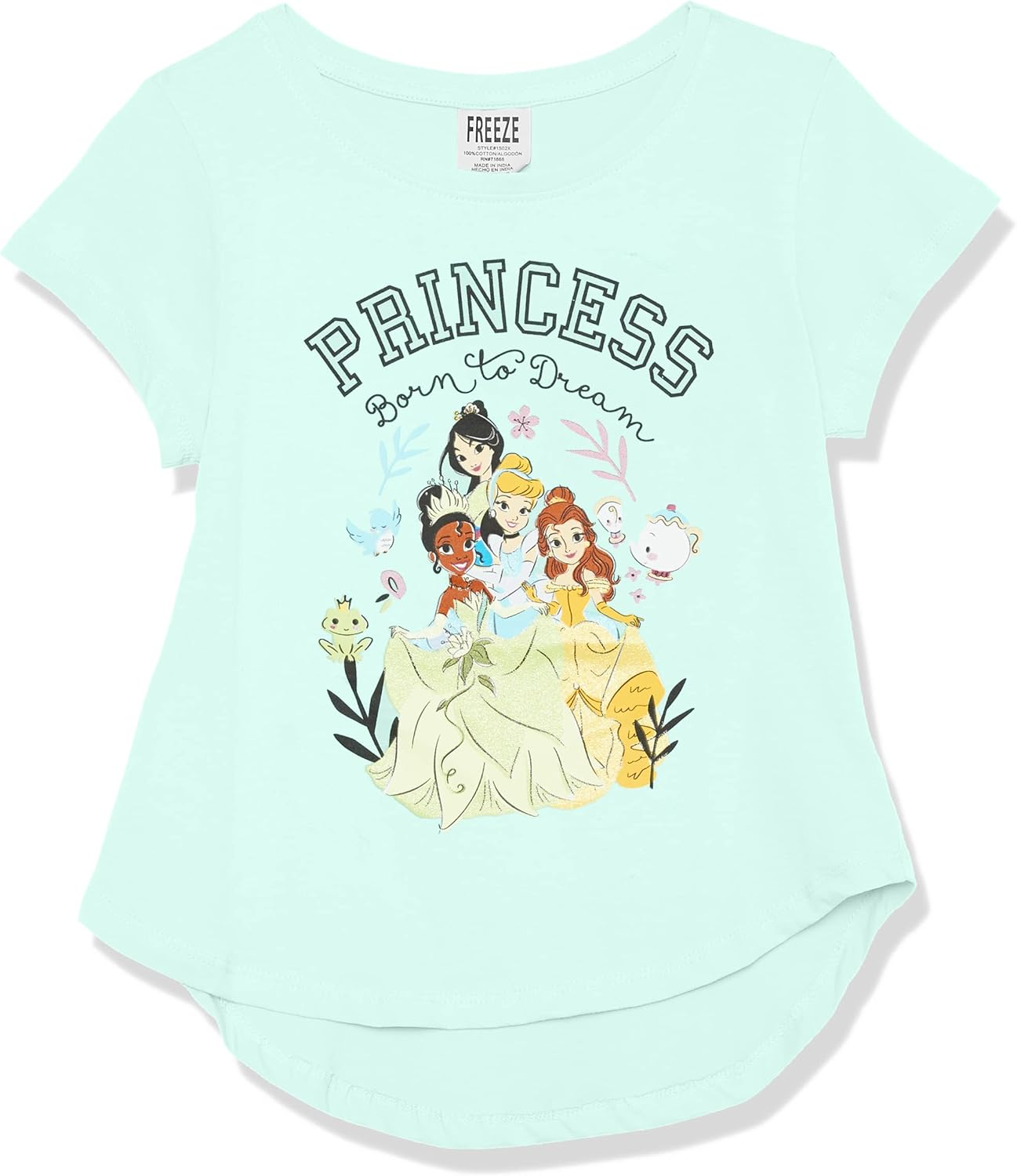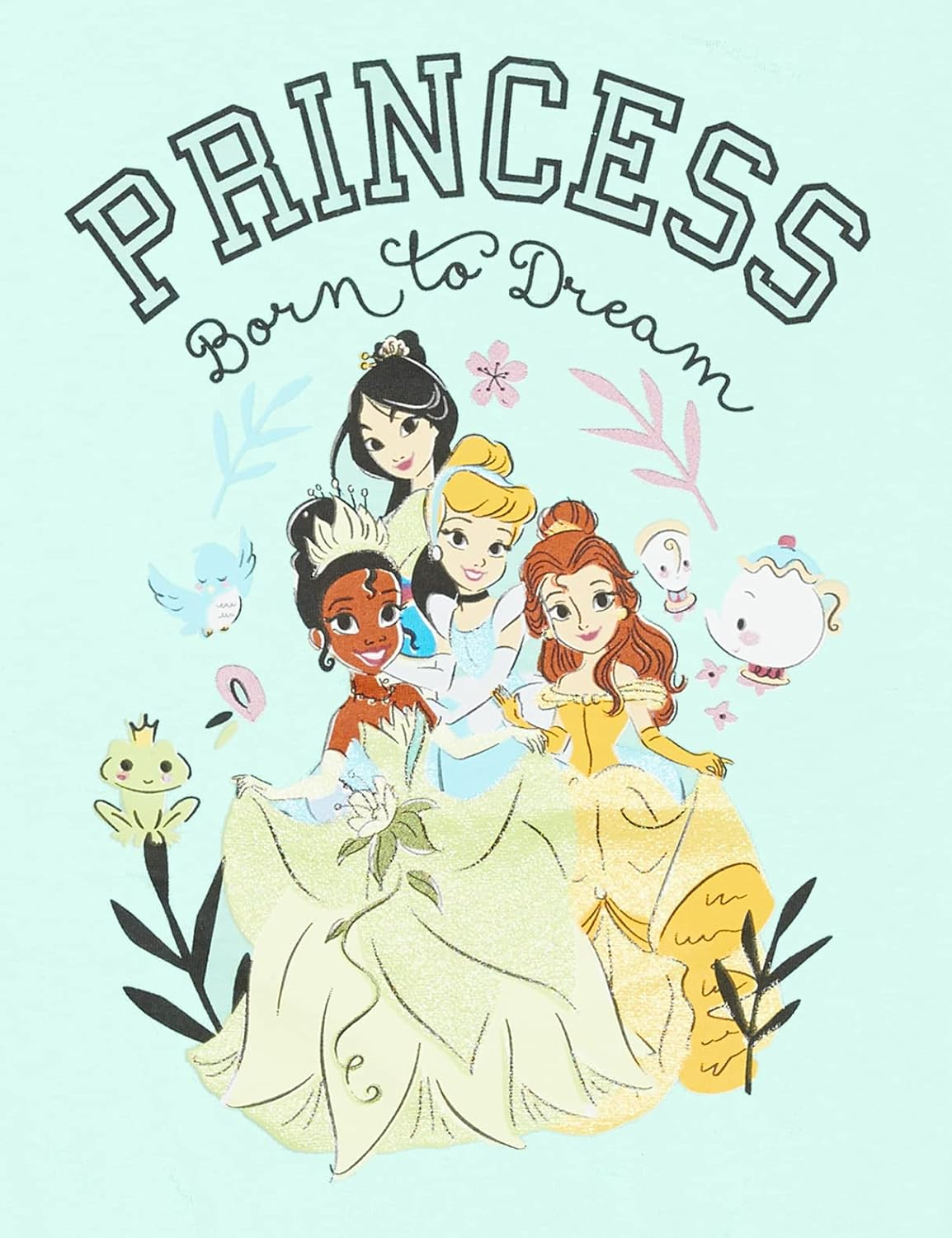 Disney’s Princess Born To Dream Group Short Sleeve T-Shirt – Let your little one embrace their dreams with this adorable fashionable Disney Princess tee. Featuring Cinderella, Belle, Tianna, & Mulan this tee is sure to be a true hit with your child! 100% Officially licensed Disney Princess tee makes the perfect gift for every child and quality you expect & deserve for any Disney fan. This Princess tee leaps to life with large & vibrant graphics of Mulan, Tiana, Cinderella, & Belle, all on a soft stylish fashionable tee. All screen printed with glitter/crystalline process. Choose from toddler sizes 2T, 3T, 4T, 5T, little girls sizes 4/5, 6/6x, to big girls sizes 7/8, 10/12, 14/16 in your favorite Disney Princess tee clothing. Great for Disney Theme Parks, Movies, Princess Birthdays, Christmas, Gift Giving, Back to School, or Just general everyday use.