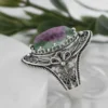 This exquisite ring is a delicate yet striking piece of jewelry that can be worn on any occasion. It is the perfect gift for your mother, daughter, sister, or beloved friend! This beautiful pink and green gemstone silver cocktail long ring is the perfect option for Thanksgiving, Christmas, Anniversary, Birthday, Mother’s Day, Valentine’s Day, or New Year’s gift for yourself or a loved one.