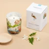 Each candle is hand-poured into a reusable 300 ml glass with a 100% cotton wick and covered with an FSC-certified wooden lid.