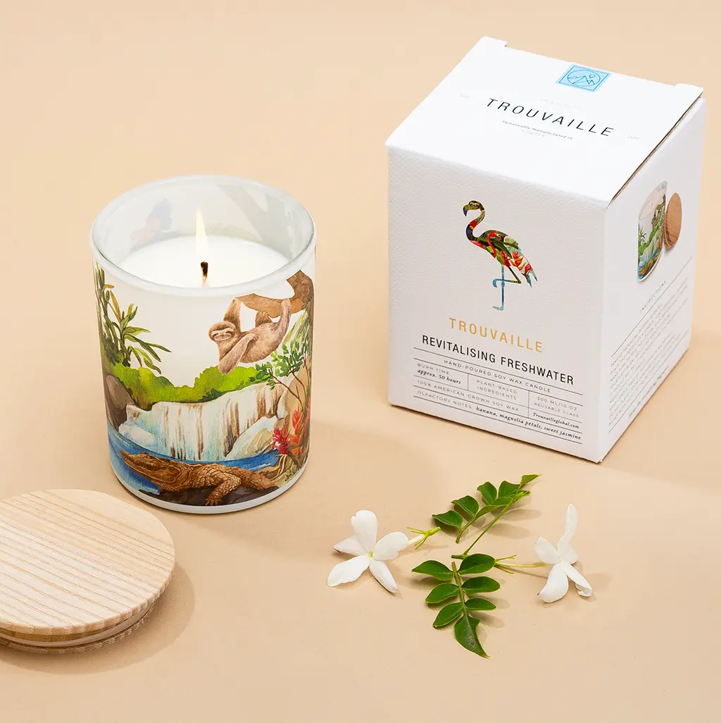 We are on a mission to save the planet’s wildlife. Our new line of candles includes six designs representing the world biomes: Desert, Forest, Freshwater, Grassland, Marine, and Tundra. Each candle sold protects 40 sq m (430 sq ft) of threatened habitat through our partnership with World Land Trust. Your purchase actually helps protect a piece of our planet. Amazing, right?