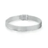 Silver Cuff Bracelet Womens.Add an element of classic old holly wood glamour to your outfit with this simple and elegant silver cuff bracelet. Crafted with an interwoven design and high-polish sterling silver this delicate bracelet is the sort of accessory that can match in with every outfit for every different occasion. Pair with a set of simple studs for an elegant look or with a set of multi-coloured rings to make a statement.