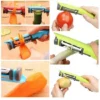 Use it forFruits and vegetables, the sturdy handle comes with a built-in slider button which can be pressed to hold in an unlocked position while you rotate to the top button to make the selection to grate, peel or slice. This top button has pictures to show all three actions and it rotates to let you select your blade. Once you select the blade, lock the slider safely in place, and get into action!!!Grating, peeling, and slicing was never so much fun and easy before.