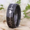 Put your love on display with these stunning black and white heartbeat wedding bands. The bands are crafted from charcoal-toned tungsten and engraved with gorgeous hearts and a heartbeat line from a MRI machine.